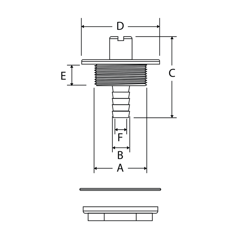 Scarico Diametro Portagomma 48mm Per Tubo 5/8" (Nero)